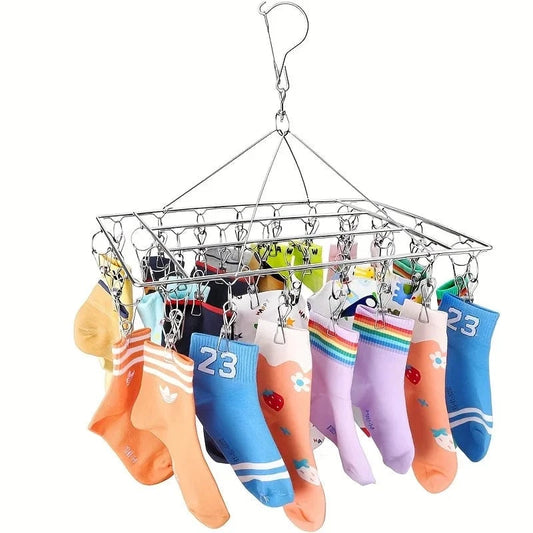 Cintre a linge en Acier Inoxydable avec 10/20 Pinces – Antivent pour Chaussettes, Sous-vêtements et Lingerie