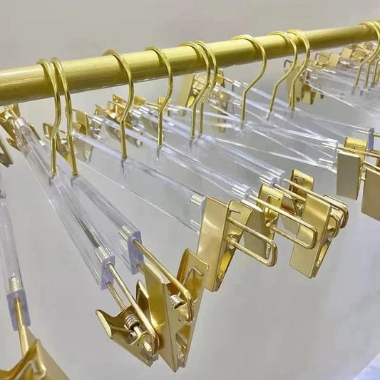 Cintres métalliques dorés avec pinces réglables – Lot de 10